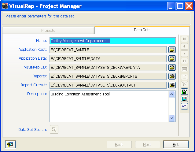 It has a set of folders to support the reports and queries. Each data set can have its own specific files. Each data set can represent a division or a department and if you have a set of data per each division then VisualRep can work with it very easily. All it takes is to create a data set in VisualRep and let it know where are folders. It is all done via the project form where you select each folder via the folder picker as shown in figure A below.